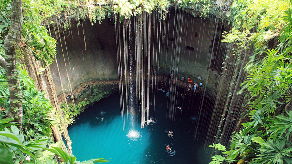 Después del recorrido por la majestuosa ciudad Maya de Chichén Itzá sumérgete en las frescas y cristalinas aguas del Cenote Sagrado Azul en Ik Kil, “El Lugar de los Vientos”.
